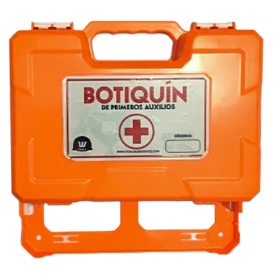 | Contenido | – Alcohol de 70° 250ml 2und – Jabón líquido 360ml 1und – Sobre gasa estéril 10×10 cm (sobre x 5) 4sob – Apósitos de gasa estéril 10x10cm (sobre x 1) 5sob – Esparadrapo 1" 2.5×4.5cm 2und – Venda elástica 4x5yd 2und – Bandas adhesivas / curitas 20und – tijera punta roma mango naranja 1und – Guantes quirúrgicos talla 7 1/2 1par – Algodón 50gr 1und – Maletín lona para botiquín 27x20x10cm 1und |