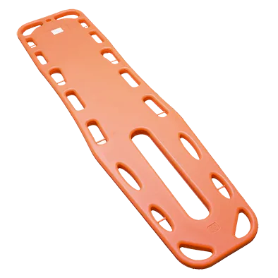 La camilla de PVC está fabricada con materiales no contaminantes y duraderos, y puede usarse como dispositivo de flotación. Su diseño traslúcido permite el uso de rayos X y escaneo CT. Es compatible con inmovilizadores de cabeza y correas, y adecuada para lesiones en cabeza, cadera, pelvis y columna.